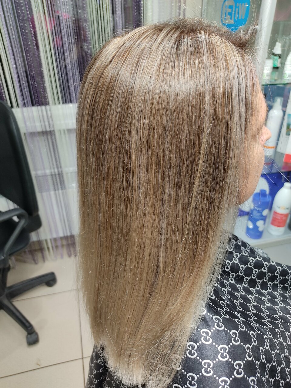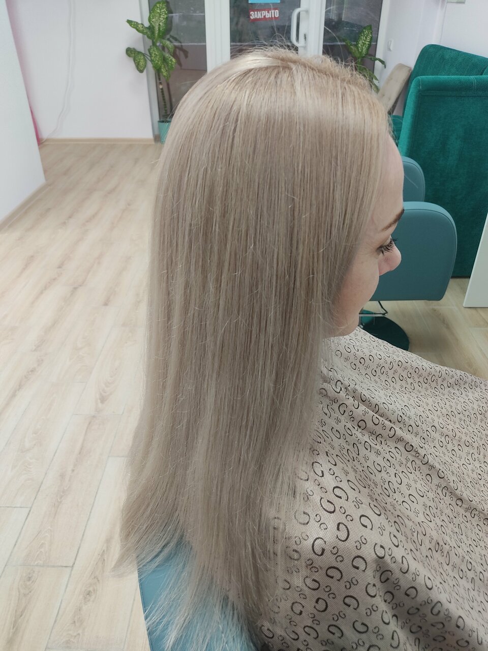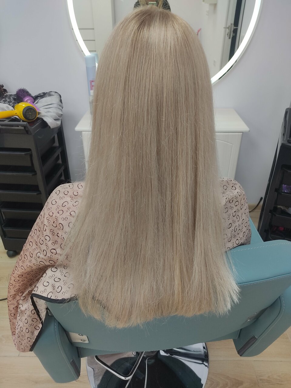 Делала кератин на блондинистые волосы. Волосы на месте, идеально смотрятся. Понравился мастер, все супер 👍